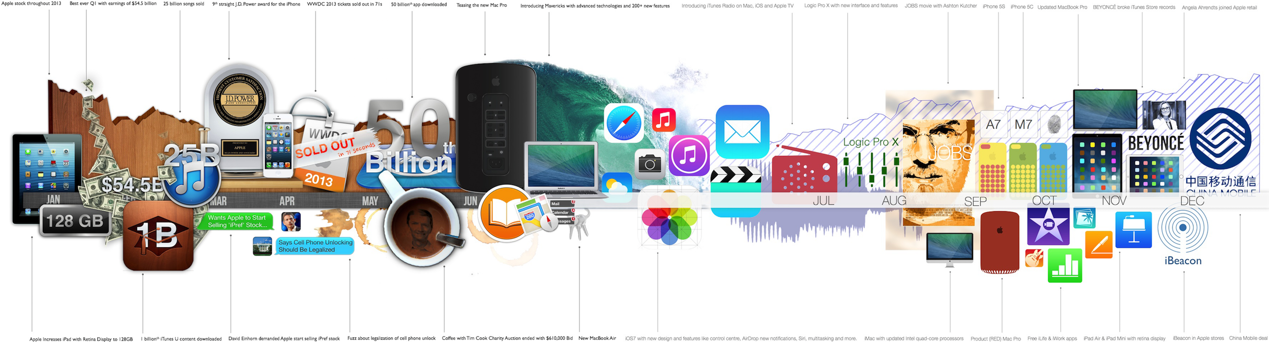 Kevin Choi氏が制作した、2013年のアップルをまとめたインフォグラフィック。画像クリックで大きな画像でご覧ください。