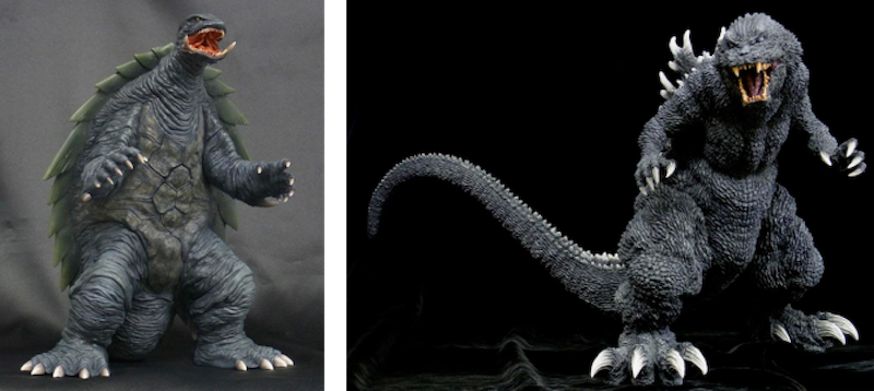 (左)最高の1999ガメラ、エクスプラスから登場。 (右)全長78cm。この迫力、緻密な造形。GMKゴジラ、降臨。