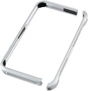 アルミ素材の削りだしのバンパータイプ。シルバー部は軽くヘアライン処理、